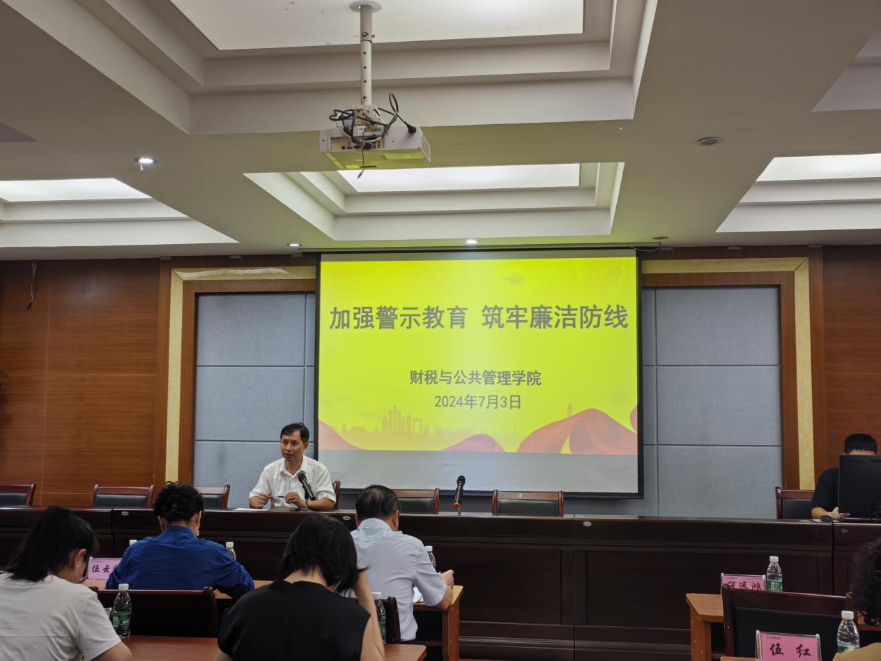 为扎实推进党纪学习教育走深走实,进一步加强党风廉政建设,塑造风清气正、廉洁自律的教师队伍。7月3日,足球彩票 在财税大楼105会议室开展警示教育,学院领导班子、全体教职工参加警示教育,会议由学院党委书记段远鸿主持。