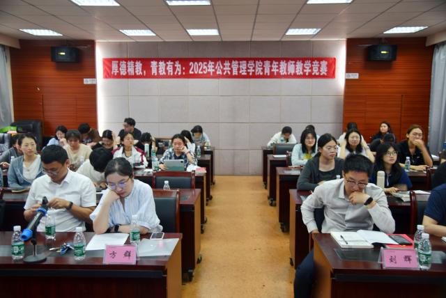 5月7日下午,公共管理学院在财税大楼305会议室举办“厚德精教,青教有为”青年教师教学竞赛院赛。本次竞赛旨在提升青年教师教学水平,营造浓厚的教书育人氛围,推动学院教学工作的高质量发展。活动邀请学校本科教学督导陈荣教授以及刘春英老师、涂小松老师担任评委,学院党委书记熊小刚和部分青年教师现场观摩。