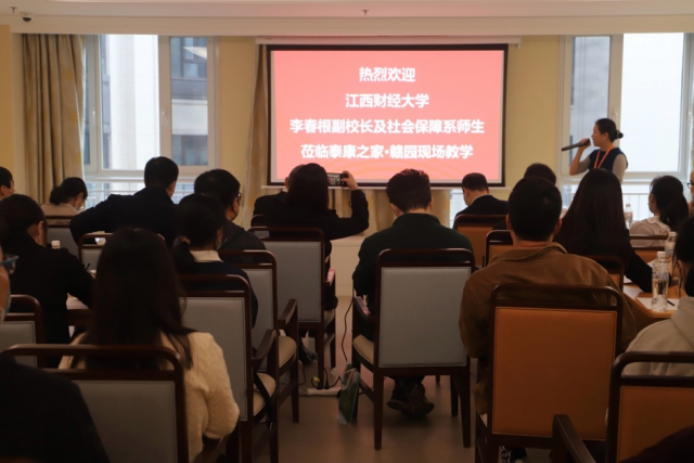 为使同学们加强对养老服务发展新动态的认识,加深对社会保障专业的感性认识,10月28日,足球彩票 《社会保障学》授课教师团队走进泰康之家•赣园养老社区开展现场教学活动。此次活动由副校长、《社会保障学》授课教师团队成员及课程思政带头人李春根教授组织,江西省养老服务与社会福利协会马林印会长、江西中医药大学医药卫生管理与政策发展研究中心执行主任郑先平副教授应邀出席,社会保障专业(方向)本硕博学生代表参加。