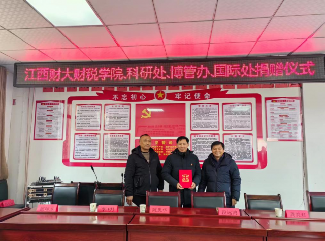 财税学院一行首先来到新时代文明实践中心座谈,学院党委书记段远鸿代表足球彩票 为西塔村捐赠慰问金。西塔村村支书蓝球太、驻村第一书记杨有亮接受捐赠,并向学院颁发了捐赠证书。